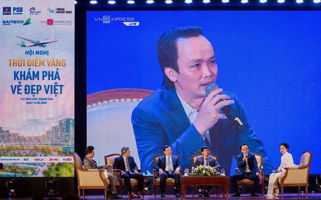 Ảnh: Ông Trịnh Văn Quyết, Chủ tịch Tập đoàn FLC, Chủ tịch Bamboo Airways phát biểu trong khuôn khổ Hội thảo “Thời điểm vàng khám phá vẻ đẹp Việt” tại quần thể nghỉ dưỡng FLC Sầm Sơn (Thanh Hoá).