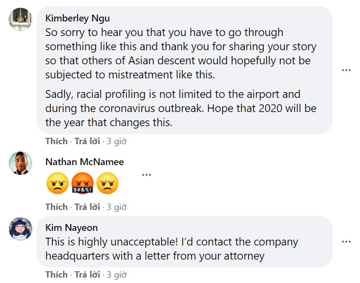 “Tôi có khác nào một ổ bệnh dịch bệnh không? Những người này sao có thể đại diện cho một hãng hàng không? Những hành vi này sao có thể chấp nhận được?”, cô viết và cho biết thêm mình chưa bao giờ cảm thấy bị ngược đãi như vậy trong 14 năm sống ở Mỹ.
