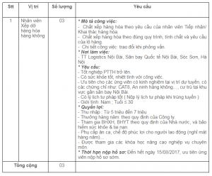 Yêu cầu hồ sơ: Ghi rõ vị trí tuyển dụng