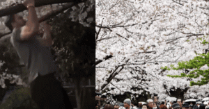 Du khách 'hứng gạch đá' vì đu cành hoa anh đào để quay video 'câu view'
