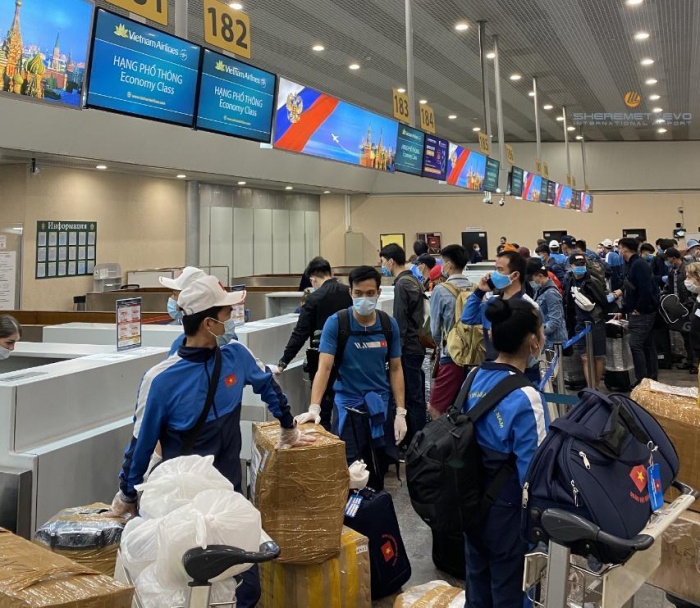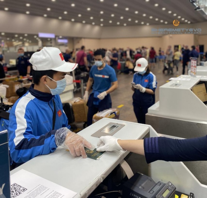 Đoàn Quân đội nhân dân Việt Nam dự Hội thao Army Games 2020 đã có mặt tại sân bay Sheremetyevo (Moscow).Cộng tác viên Báo Giao thông tại sân bay Sheremetyevo (Nga) vừa gửi về hình ảnh đoàn Quân đội nhân dân Việt Nam dự Army Games tại Nga hoàn thành thủ tục hàng không, chuẩn bị lên đường về nước.
