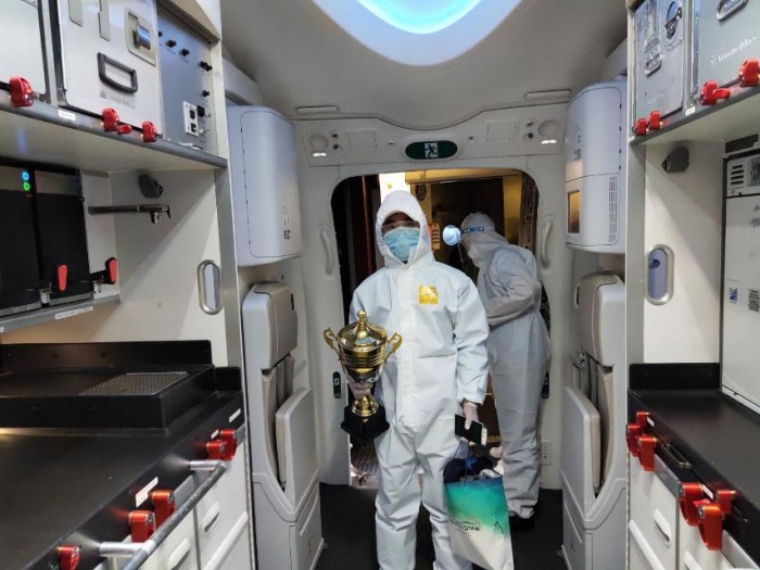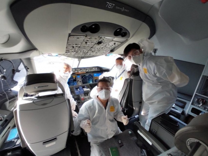 Chuyến bay đưa đoàn thể thao, trong đó có khách dương tính về được khai thác bằng tàu bay Boeing 787-10. Các hành khách đi trên chuyến bay được yêu cầu mặc đồ bảo hộ và đeo khẩu trang trong suốt chuyến bay. Suất ăn, nước uống được đóng gói và đặt sẵn tại ghế ngồi. Để hạn chế nguy cơ lây nhiễm, những hành khách ngồi cùng một hàng ghế không đồng thời ăn uống cùng lúc, ăn lần lượt theo từng hàng ghế.