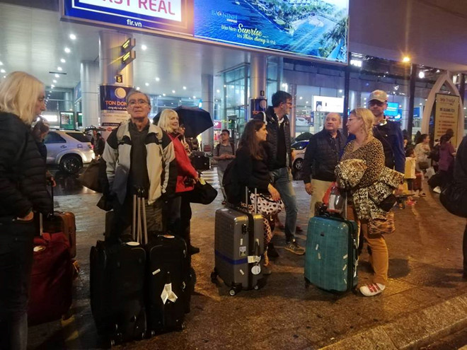 ”Bình thường lượng taxi và xe Grab ở đây rất nhiều. Hôm nay mưa ngập, một số xe chết máy, các hãng taxi cũng không cho xe vào sân bay nên nhiều khách bị dồn đọng lại”, người này nói.