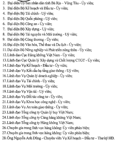 27 ủy viên của Hội đồng gồm đại diện tỉnh Bà Rịa – Vũng Tàu, các Bộ: Kế hoạch và Đầu tư, Tài chính, Quốc phòng, Công an…