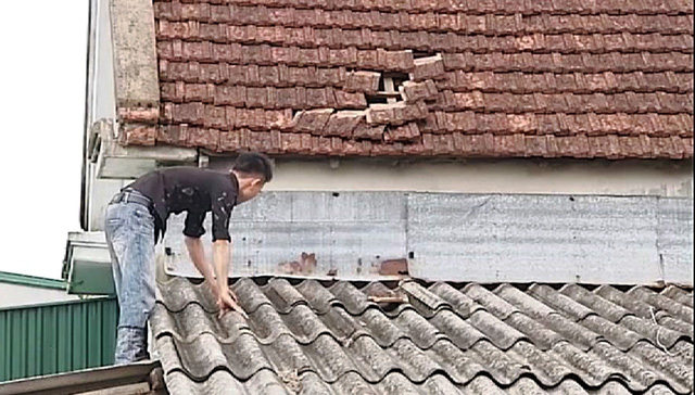 Sau đó, bà Mai và con ra kiểm tra thì phát hiện gần 40 viên ngói trên mái nhà bị “thổi” bay. Thời điểm này thời tiết bình thường, nắng nóng và không hề có gió lốc.