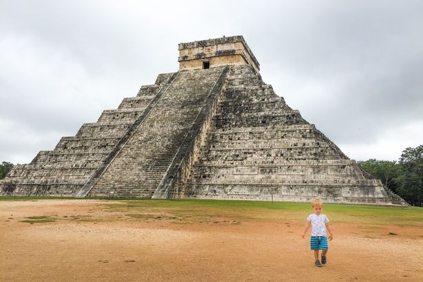Cậu bé khám phá khu di tích Chichen Itza ở Mexico