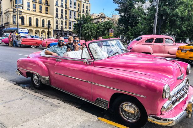 Gia đình Ceclan cùng nhau đi xe cổ ở thủ đô Havana, Cuba.