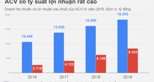 Báo cáo tài chính quý IV/2019 của Tổng công ty Cảng hàng không Việt Nam (ACV) ghi nhận mức lợi nhuận ròng 2.435 tỷ đồng, tăng gần gấp đôi cùng kỳ năm trước. Trong quý cuối cùng của năm 2019, ACV ghi nhận doanh thu thuần về bán hàng và cung cấp dịch vụ 4.793 tỷ đồng, tăng 15% so …
