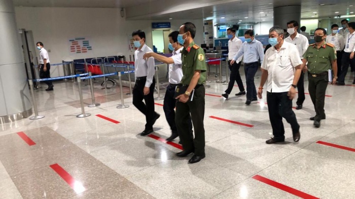 “Việc mở lại một số đường bay thương mại quốc tế giúp từng bước nối lại hoạt động giao lưu kinh tế lớn, song chỉ cần một sơ sẩy nhỏ thì có thể dẫn đến “nhập dịch” hoặc “chuyển dịch” sang nước mình, kéo theo đó là tác động kinh tế xã hội rất lớn”, Thứ trưởng Lê Anh Tuấn nhấn mạnh.Kiểm tra khu vực an ninh cảng hàng không Quốc tế Tân Sơn Nhất
