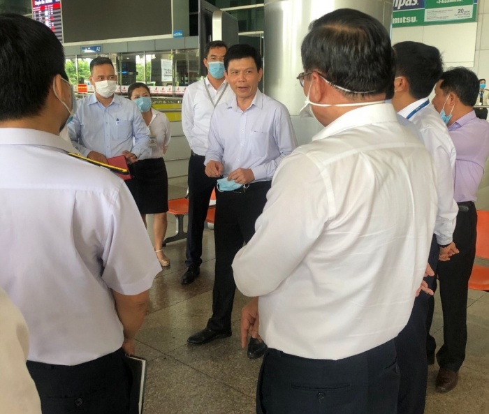 Thứ trưởng Lê Anh Tuấn trực tiếp kiểm tra kế hoạch phòng chống dịch, lịch phân công nhân lực trực dịch, vị trí nhân sự, quy trình, phân luồng, đo thân nhiệt, cung cấp suất ăn, nước uống, chỗ nghỉ ngơi cho hành khách và công tác đảm bảo an toàn lao động đối với cán bộ, công nhân viên, như thiết bị phòng chống dịch, khẩu trang, nước rửa tay, găng tay, bộ quần áo bảo hộ, máy đo thân nhiệt, phun thuốc khử khuẩn …