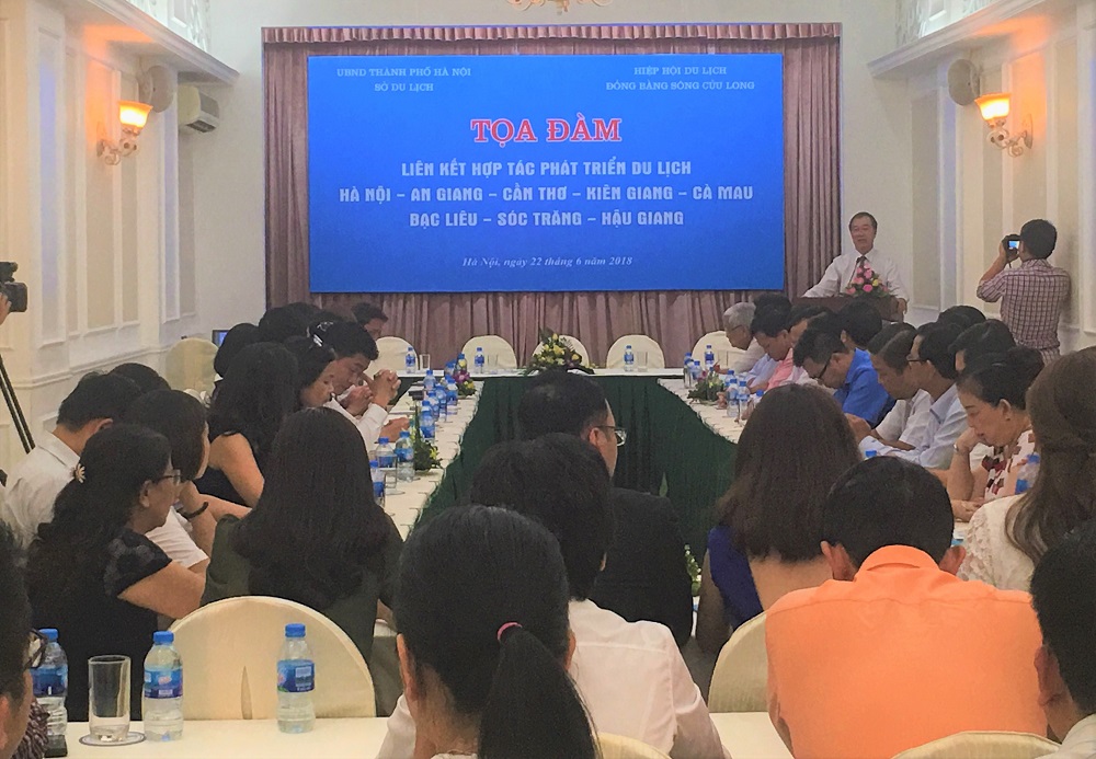 Triển khai Chương trình hợp tác phát triển du lịch giai đoạn 2016-2020 giữa Sở Du lịch Hà Nội và các tỉnh, TP vùng đồng bằng sông Cửu Long, chiều 22/6, Sở Du lịch Hà Nội phối hợp với Hiệp hội Du lịch Đồng bằng sông Cửu Long tổ chức Tọa đàm Liên kết hợp tác phát triển du lịch Hà Nội – An Giang – Cần Thơ – Kiên Giang – Cà Mau – Bạc Liêu – Sóc Trăng – Hậu Giang.