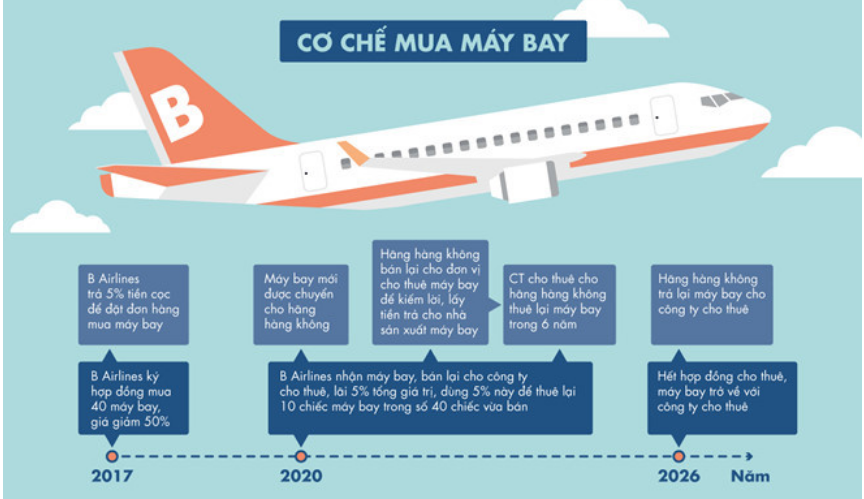 Các hãng hàng không mới sẽ chi ra lượng nhỏ tiền so với giá trị hợp đồng để đặt mua máy bay, sau đó làm việc với công ty cho thuê máy bay để bán lại số máy bay này với giá cao hơn giá mua vào, kèm hợp đồng thuê lại trong một khoảng thời gian, thông thường là 10 năm.