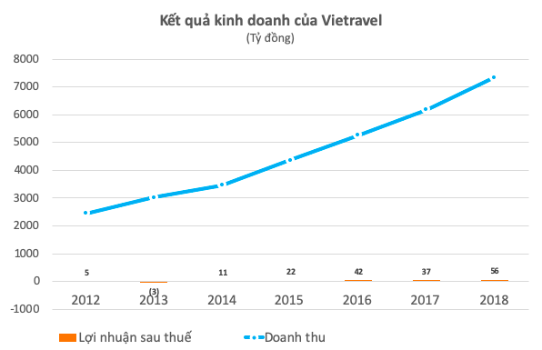 Năm 2018, với doanh thu lên đến trên 7.300 tỷ đồng nhưng lợi nhuận ròng chỉ có 54 tỷ đồng tức tỷ suất lợi nhuận chỉ hơn 0,7% dù đã cải thiện đáng kể so với các năm trước. Mức lợi nhuận của Vietravel thậm chí còn thua xa nhiều khách sạn 4-5 sao.