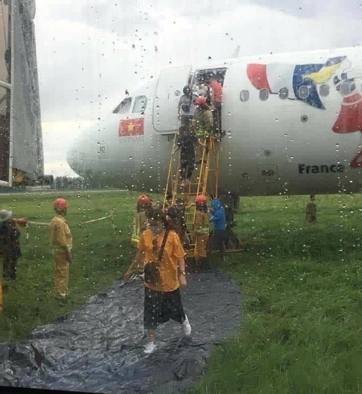 Thời điểm 12 giờ 24, xe cứu hỏa tiếp cận máy bay nhưng không có dấu hiệu cháy nổ. Đến 12 giờ 41, xe thang ra tiếp cận máy bay nhưng do nền đất cỏ bị lún nên phải yêu cầu thang kỹ thuật của thợ máy ra hỗ trợ. Sau 9 phút, thợ máy có mặt kiểm tra và dùng thang thang kỹ thuật tiếp cận để đưa các hành khách đầu tiên xuống máy bay.