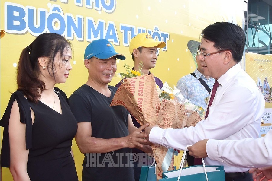 Sáng 12-6, tại Cảng hàng không quốc tế Cát Bi, Vietnam Airlines (VNA) tổ chức khai trương 4 đường bay mới từ Hải Phòng đi Đà Lạt, Cần Thơ, Buôn Mê Thuột, Phú Quốc. Đến dự có đồng chí Lê Khắc Nam, Phó chủ tịch UBND thành phố, đại diện lãnh đạo các sở: Giao thông-Vận tải, Du lịch, Ngoại vụ và Cảng hàng không quốc tế Cát Bi.