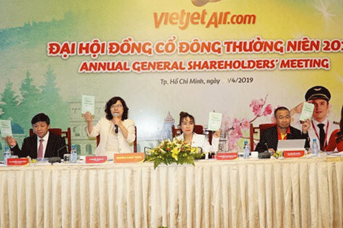 Với kết quả tích cực, đại hội cổ đông Vietjet đã thông qua quyết định mức cổ tức 2018 là 55%, bao gồm tiền và cổ phiếu.