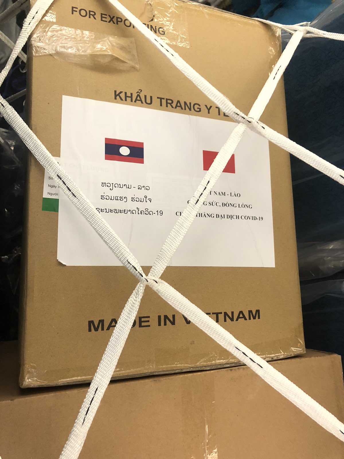 Số khẩu trang, các trang thiết bị y tế viện trợ của Chính phủ và nhân dân Việt Nam sẽ góp phần giúp Chính phủ và nhân dân Lào, Campuchia sớm đẩy lùi dịch COVID-19.