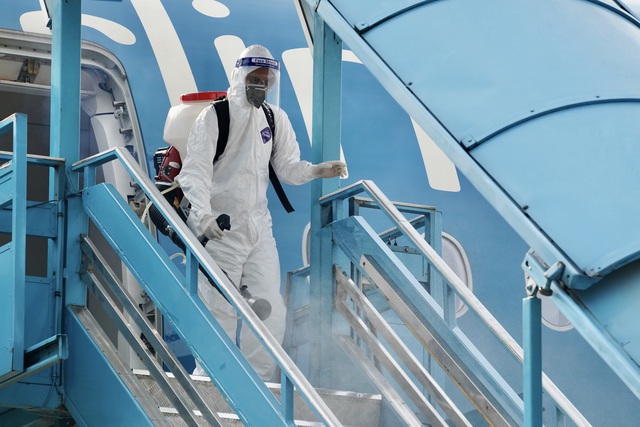 Sau khi hành khách rời đi, công tác khử trùng tuyệt đối với máy bay, xe thang, phương tiện phục vụ mặt đất được thực hiện